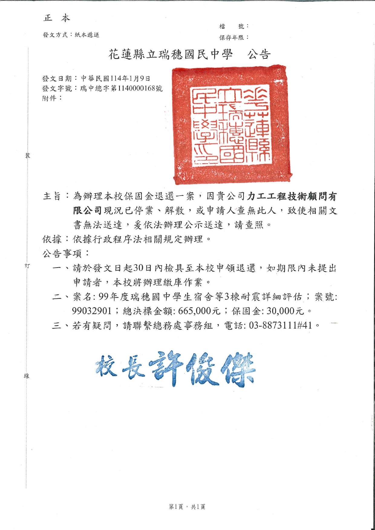 花蓮縣立瑞穗國民中學防制校園霸凌因應小組