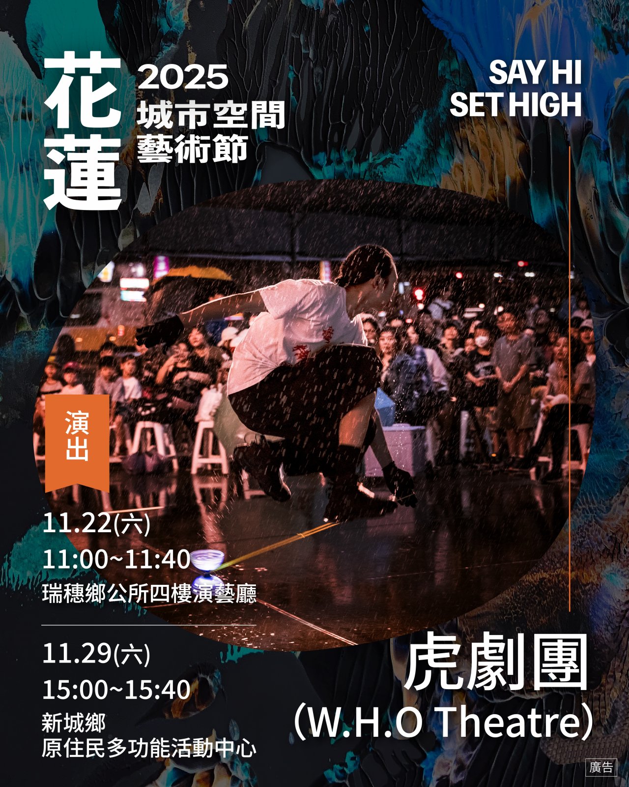 | 一、 | 花蓮城市空間藝術節自 2020 年起已連續舉辦五屆,今年邁入第六屆,活動除延續前五屆藝術節所凝聚的城市記憶與民眾情感外,更以藝術為媒介,活化城市公共空間,展現地方文化特色,讓藝術走入生活、融入城市,形塑兼具創意與文化深度的城市風景,今年活動特別串連各鄉鎮,規劃舉辦 2 場講座與 4 場演出,持續以多元形式深化藝術與地方的連結。 |