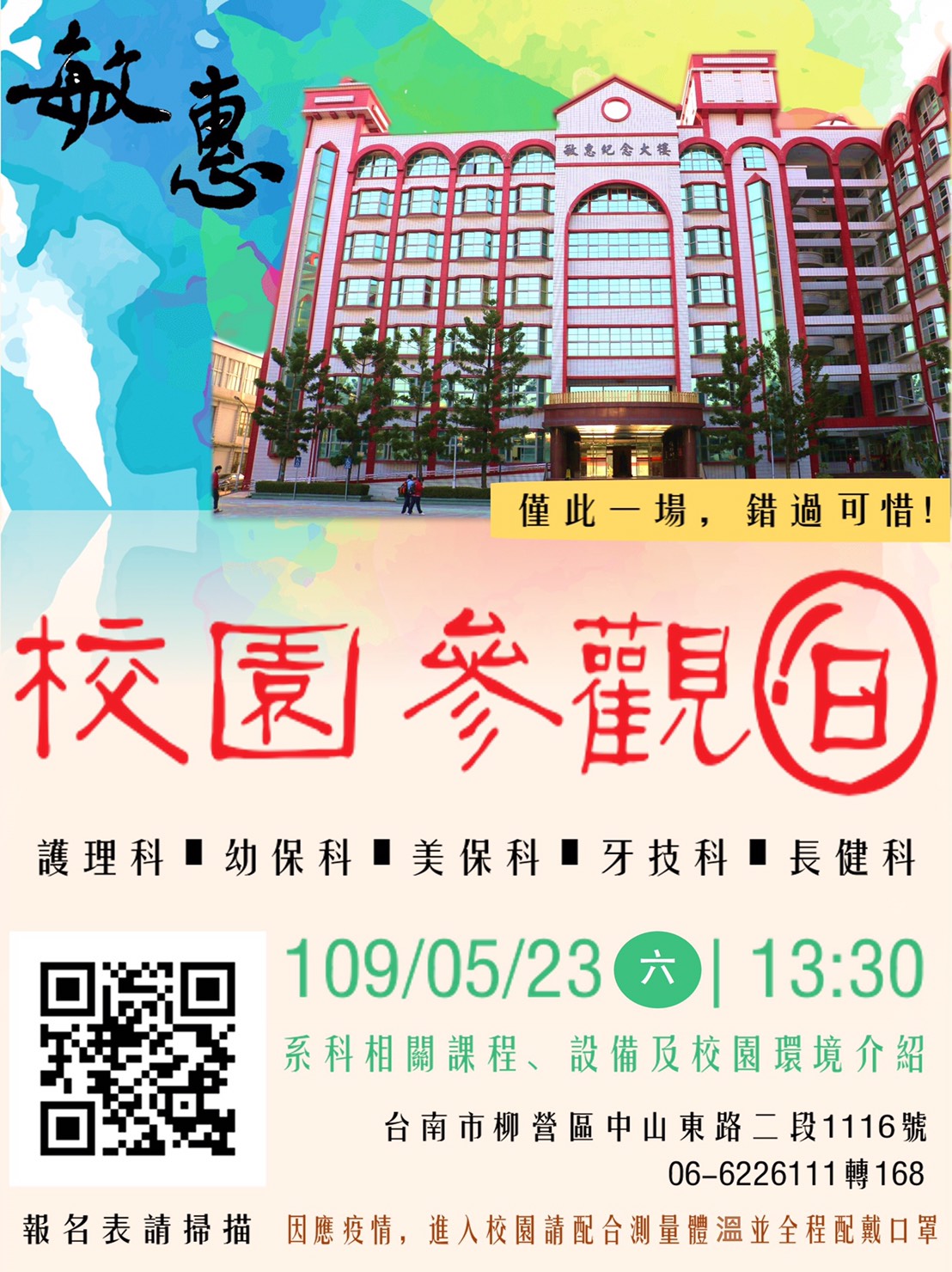 轉知 敏惠醫護管理專科學校108學年度國三家長及學生參觀日資訊